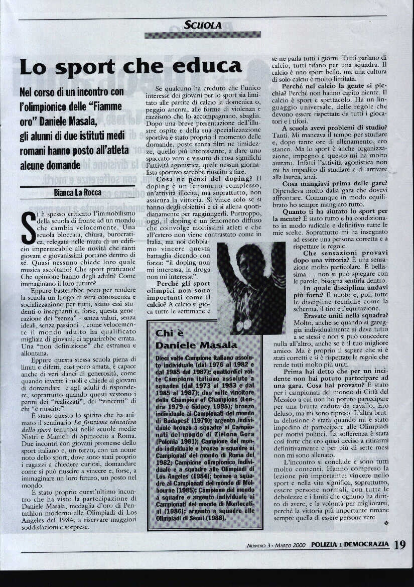 (Questo articolo è stato pubblicato sul numero 3 del settembre 2001, sull'House organ della Federazione Medico Sportiva Italiana, "MEDICINA DELLO SPORT" - ED. MINERVA MEDICA).